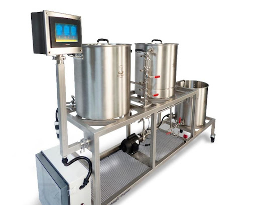 The system runs pumps, controls heaters, and logs data for recipes.